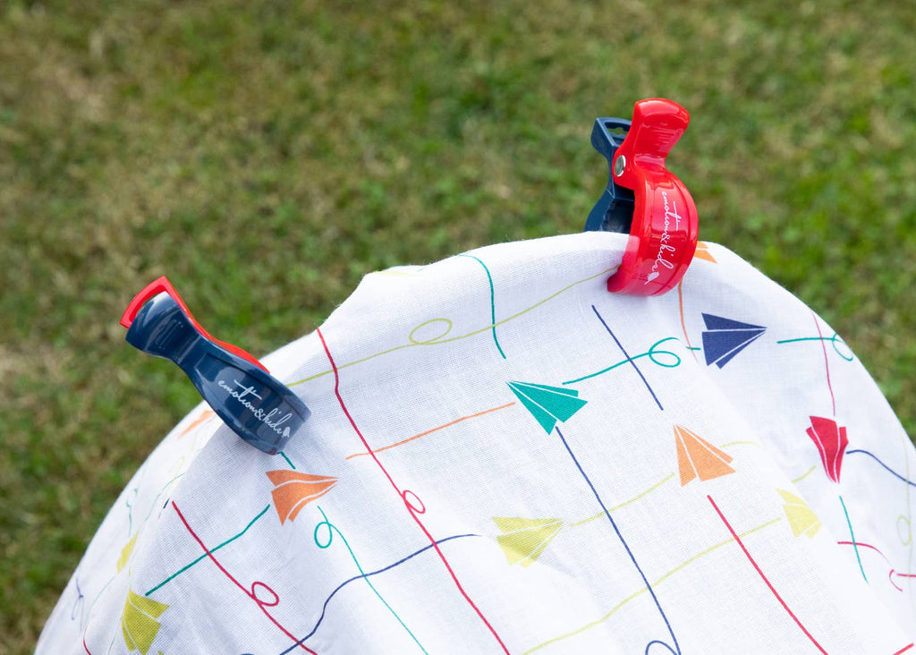 This fun paper planes muslin wrap is ideal for babies, whether it’s for swaddling, shading, or privacy when feeding. Our unique fine weave super soft 100% cotton muslin wrap is comfortable and delicate, our extra-large size 140 x 120 cm is perfect for swaddling. Coordinate back with our pram clips to complete the look. Designed in Australia