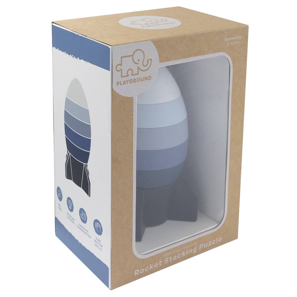 Develop your baby's fine motor skills and hand-eye coordination with this fun, rocket puzzle that’s out of this world! Made from BPA-free, food-grade silicone, this toy is safe for baby and easy to clean. Features: • Dimensions: 7 x 7 x 11cm • BPA-Free, food grade silicone • Safe for little hands and mouths • Encourages hand-eye coordination • Tested to AUS/NZS toy standard .
