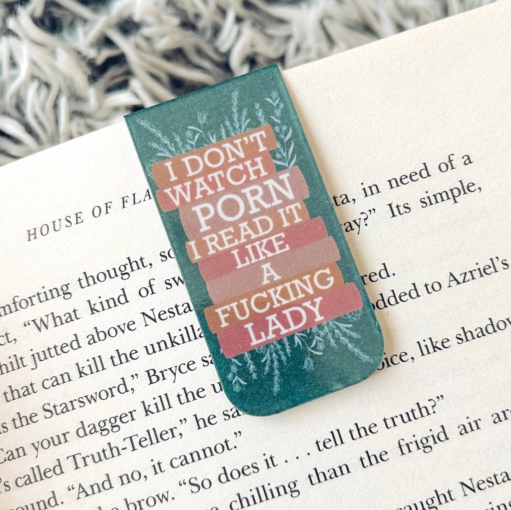 'I Don't Watch Porn, I Read It Like A F*cking Lady' Printed on 300gsm paper and then covered in a clear gloss laminate. 2 x 2mm thick magnets used Measure approx. 6cm x 3cm All magnetic bookmarks are able to be sent as hang-sell or as themselves. If you prefer to have them as hang-sell, please write a note at checkout, otherwise they will be sent as normal.